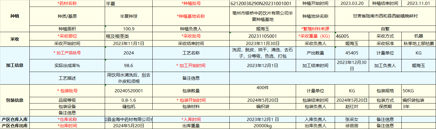 半夏中藥材種植基地溯源信息